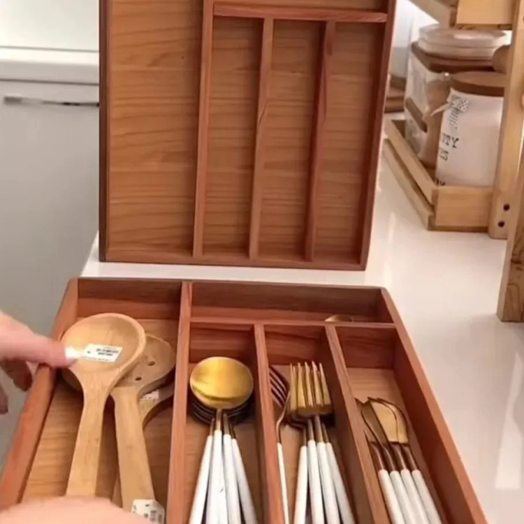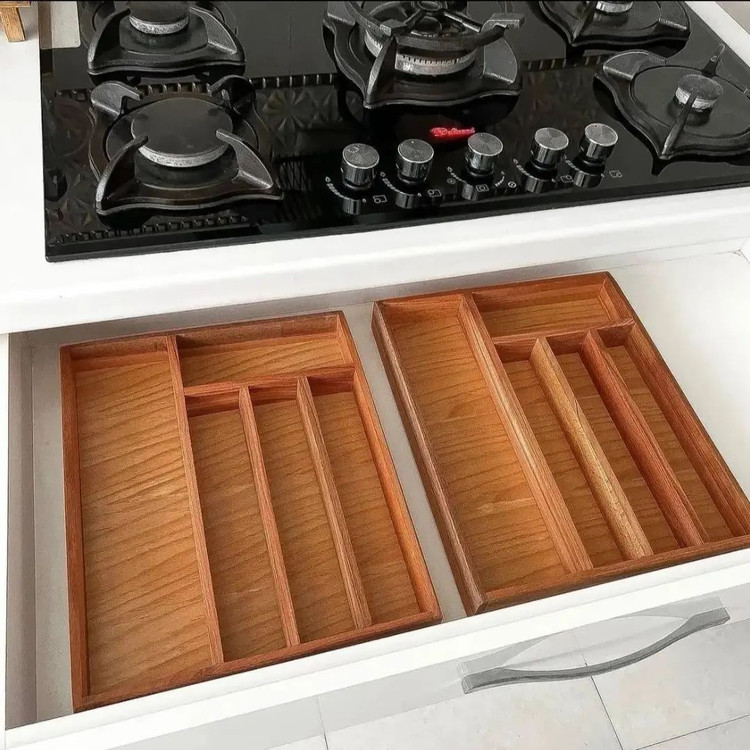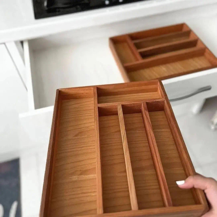 برای نظم دادن به قفسه های کابینت به ویژه کشوها شما به جاقاشقی نیاز دارید تا مانع از جدال و درگیری قاشق و چنگال ها و ابزارهای آشپزخانه شود. در واقع با جا قاشقی چوبی داخل کابینتی بزرگ 6 خانه می توانید به زندگی ابزارهای آشپزخانه سر و سامان و نظم دو چندان بدهید.
